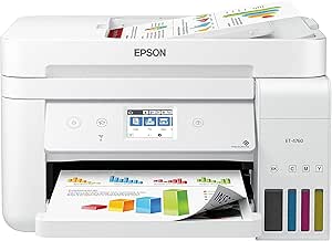 The Epson EcoTank ET-4760 is a high-performance, all-in-one printer designed for efficiency and productivity. It features a supertank system that uses replacement ink bottles instead of cartridges, offering up to 90% savings on ink costs and providing up to two years of ink with each set. This model supports a wide range of tasks with its 30-sheet Auto Document Feeder, 250-sheet paper tray, and capabilities for auto 2-sided printing, scanning, copying, and faxing. With wireless printing from smart devices and voice-activated commands, the ET-4760 ensures seamless connectivity and sharp, fast color documents, all while minimizing waste and trips to the store.